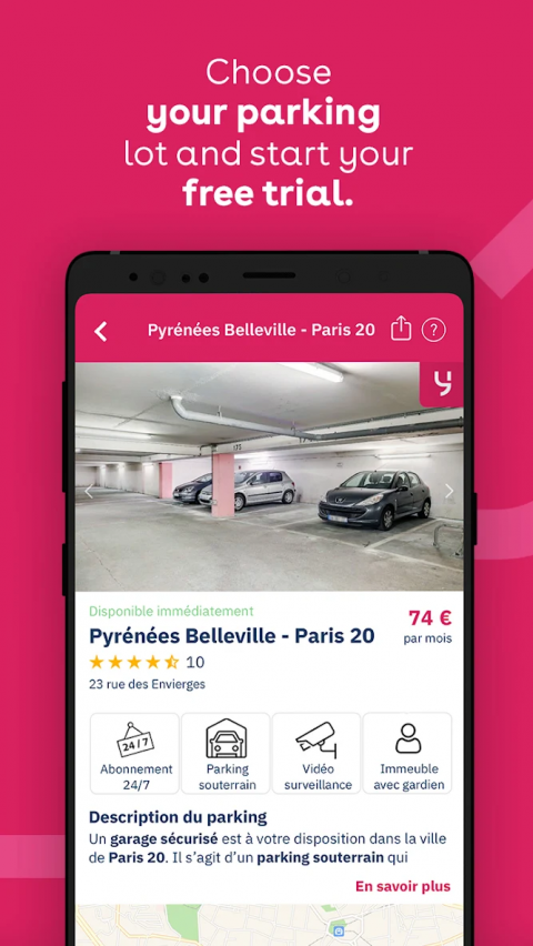 Yespark is the cheapest way to park in Paris and its suburban. Open yourself one of the +3500 parking spot.Yespark advantages